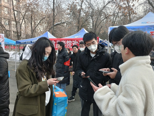 接待点上,学生骨干和志愿者们帮助新生搬运行李,办理扫码报到、领取钥匙、校园一卡通等各项报到事宜。
