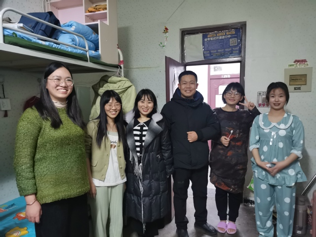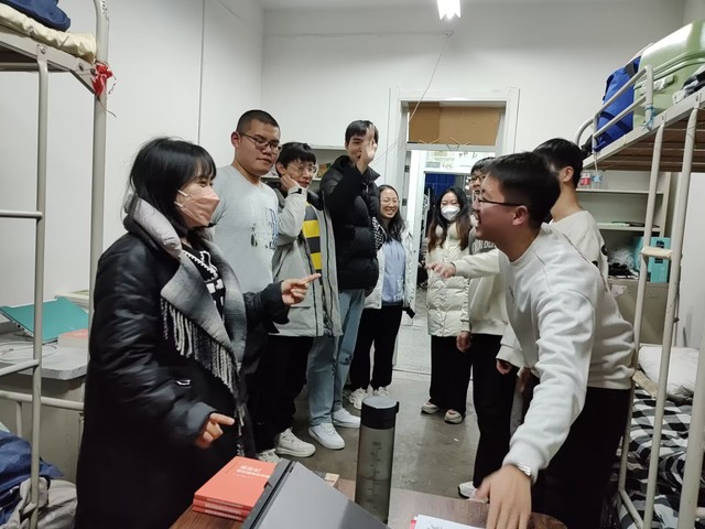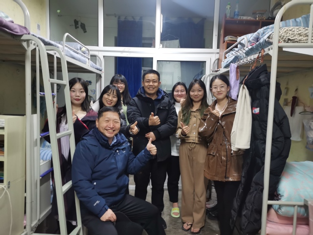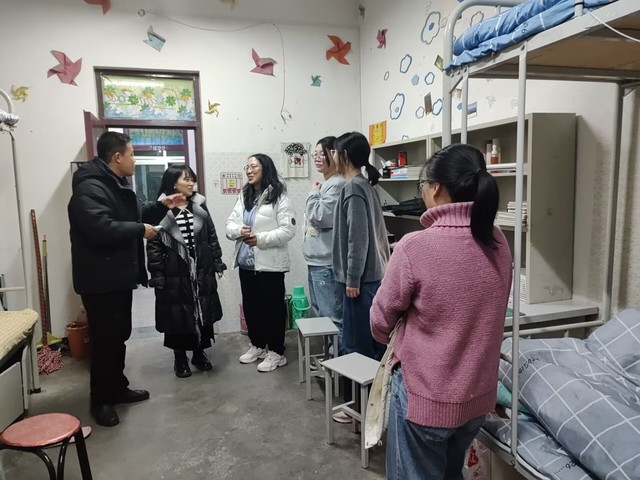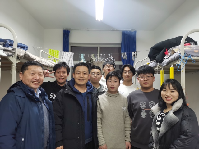 为了解学校新生住宿和生活情况,引导新生尽快适应新生活新环境,学院党委副书记雷建鹏带领新生班主任、辅导员来到新生所在寝室。