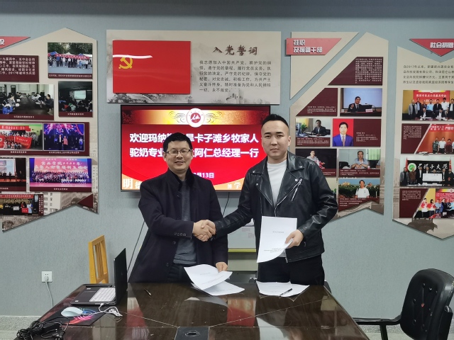 座谈会上,阿仁总经理介绍了合作社概况、研发团队、产品与技术等情况,希望双方在科研项目申请、产品开发等方面的开展合作。李宝坤教授围绕研究生培养、科学研究、成果转化及校企合作交流等方面介绍了研究中心的情况。双方就进一步加强沟通合作、专业共建、人才共育、校企合作、开发新产品、技术改进等方面进行充分探讨达成共识,并现场签约。下一步,李宝坤教授团队将与牧家人驼奶专业合作社在特色乳品研发与生产、产学研等方面开展合作,不断提升双方的核心竞争力,促进双方在科研与产业方面快速稳步向前发展。