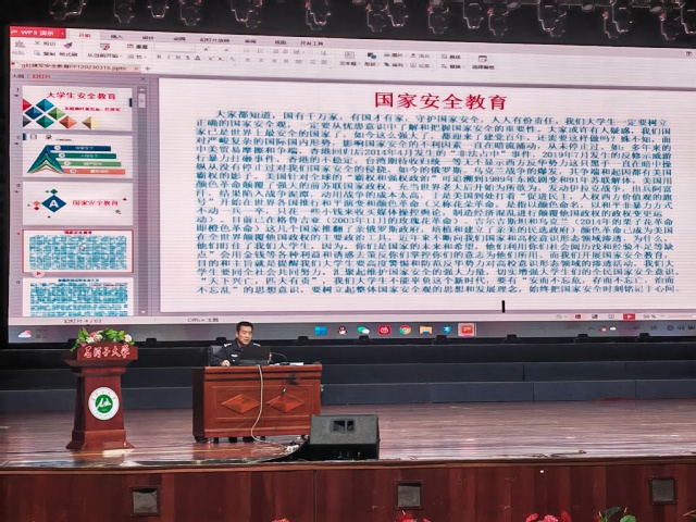 在讲座中,民警同志从国家安全、网络安全、交通安全、财产安全、人身安全、消防安全六个方面进行讲解,结合大学校园安全工作的实际,列举大量真实案例,极大地增强教育内容的感染力和说服力。