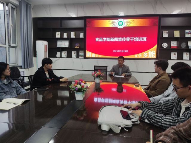 为提高食品学院宣传队伍素质、提升宣传质量,促进院新闻宣传工作迈上新台阶,3月29日,学院新闻宣传骨干培训班在220会议室开班,学院党委副书记雷建鹏出席开班仪式并讲话,大学党委宣传部融媒体中心甘秀叶老师讲授第一课。学院各部门、各级党团组织宣传骨干60余人参加培训。