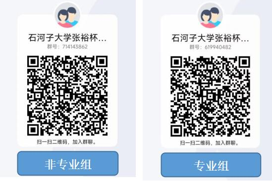 报名时间为即日起至2023年5月4日。参赛选手务必于截止日期加入竞赛报名群(请扫描以下二维码加群),填写群内线上报名表。进入报名界面后,参赛选手须如实填写本人姓名、学号、学院、专业、组别等信息,确认提交完成报名。填报信息与竞赛成绩、获奖证书挂钩,如果填报错误或经核查不实,将可能被取消竞赛成绩。