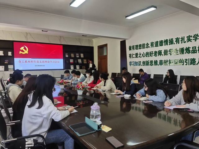 4月23日下午,食品科学与工程系本科生党支部在学院220会议室组织全体学生党员进行集中理论学习,会议由组织委员高宇杰主持。