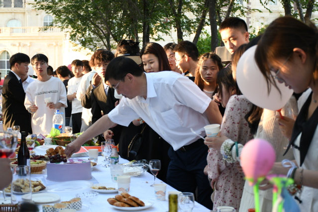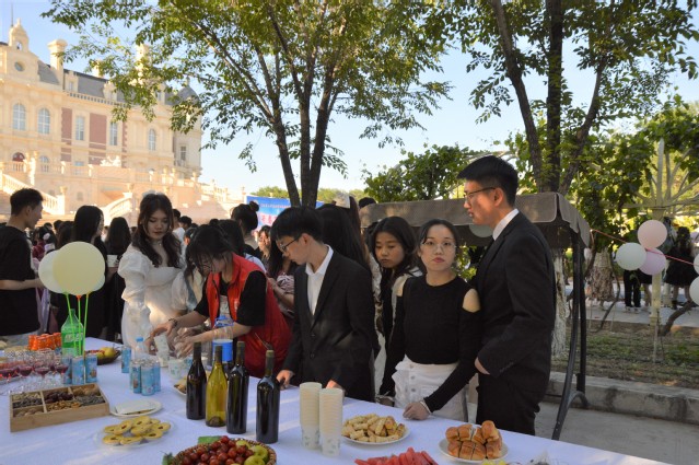 全体师生举杯共饮开启酒会,品鉴学院自酿红酒,品尝学院四大学生俱乐部制作的饼干、蛋糕等甜点美食,叙说师生之情、同窗之谊。舞台中央师生精彩表演,歌声动人,舞姿优美,同学们以舞台答复青春,用热情憧憬未来,现场充满了鲜花与掌声、不舍与感恩、美食与祝福。一个故事,一曲惊鸿,一杯美酒,一段希望,从懵懂稚嫩到睿智成熟,从青涩羞怯到自信坚强,同学们风华正茂,向阳而生。