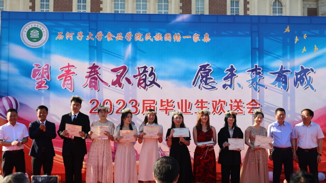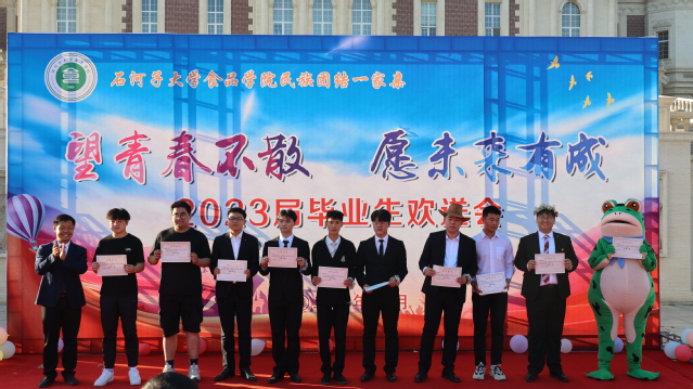 院长张建宣读优秀毕业生表彰名单,与会领导为优秀毕业生颁奖并佩戴花环,激励同学们在未来的学习和发展中不忘初心,坚持努力,争创更好的成绩。党委副书记雷建鹏为王超叶颁发“最美优秀志愿者”荣誉证书,号召同学们发扬青年志愿者精神,投身志愿服务事业,展现食品学院学子高尚精神与务实担当。