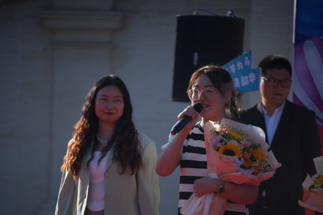 班主任代表王庆玲老师发言,回忆了与同学们一起的点点滴滴,勉励同学们心存感恩、志存高远、奋力拼搏,祝愿大家梦想成真,一帆风顺。在校生代表翟顺杰、芮晓雪发言,为学长、学姐们送上衷心祝福,表达了感激和不舍之情,表示将以师哥、师姐为榜样,勤勉刻苦、努力钻研、敢于创新,用热情和拼搏续写新的辉煌篇章。