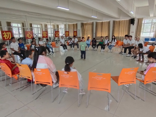随后,大家来到8连和小朋友们见面,并通过才艺表演进行友好互动。接着,实践团成员和孩子们围坐在一起开始“击鼓传花”“萝卜蹲”等游戏全方位开发孩子的协作能力、运动能力。伴随着不绝于耳的笑声和欢声,队员们和孩子们互相敞开心扉、打成一片,建立起了对彼此的信任。