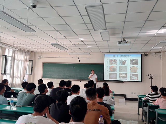 8月28日授课第一天,学院组织督导,院领导及各系办负责人等深入课堂实时关注开课情况,教师学生均能按时到位,精神状态饱满的迎接新学期第一天课程。学院对开课第一周教学检查工作也进行了安排部署,副院长魏长庆,教学办公室主任秦婕,团委书记刘桂青等一起来到博学楼,对《食品微生物学》课程进行随堂督导听课,并认真查看和了解了教师教学准备、学生出勤和教室设施等情况。