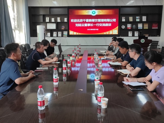 8月30日,北京千喜鹤餐饮管理有限公司刘延云董事长一行来到我院参观交流,食品学院副书记雷建鹏、副院长任亚梅、果蔬贮藏保鲜方向师生代表参加了座谈交流会。