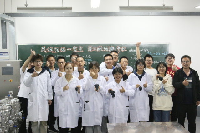 9月27日晚,在中秋佳节来临之际,葡萄与葡萄酒工程系本科生党支部结合专业特色,联合食品学院葡萄酒俱乐部在主楼葡萄酒工艺实验室开展了“民族团结一家亲,葡工酿酒迎中秋”主题党日活动。党支部学生党员、教师党员、少数民族学生等20余人参加。
