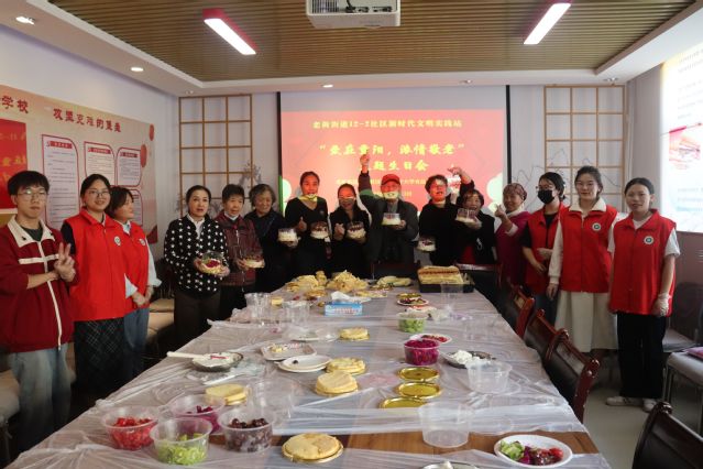 食品学院应结对单位老街街道12-2社区邀请,赴社区举行重阳节敬老主题集体生日会。青年志愿者送往社区手工制作的低糖蛋糕40余份,还手把手和老人一起制作属于自己的鲜果蛋糕。最后,志愿者们和社区工作人员一起登门拜访了三十余位老寿星”,送去真挚祝福。同学们进社区、做蛋糕、话家常,营造了浓浓敬老助老的中华民族传统文化氛围,让每一位老年人感受到无比的温暖,更感受到了来自社会和青年大学生的关怀。