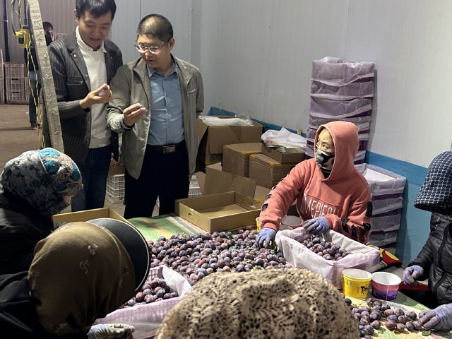 2023年9月,陈国刚教授带领小院多名研究生前往图木舒克市、伊犁州等地,与多家西梅企业进行交流。在了解西梅产业链后,双方就西梅生长、采摘、加工及贮藏存在的问题进行深入探讨。针对西梅采后贮藏难、加工难等问题,小院师生凭借其在果蔬贮藏加工领域的深厚专业知识,为各家公司提出了具有针对性的问题解决方案。双方就西梅贮藏、冷库管理、人员培养等方面达成了共识,决定在未来进一步加强合作,共同推动新疆地区西梅产业的发展。