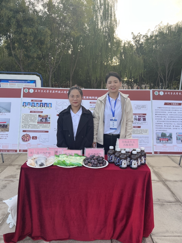为学习贯彻习近平新时代中国特色社会主义思想主题教育——落实《习近平总书记给中国农业大学科技小院的同学们的回信》精神系列活动之一。2023年9月25日,西梅科技小院师生积极参与石河子大学南疆研究院承办的石河子大学首届科技小院成果展暨经验交流会。展会上学生对近阶段以来有关西梅采后保鲜技术研究概况以及西梅干、冻干西梅片、西梅果饮等产品做出推介,西梅产品深受各位专家、老师及学生的喜爱,西梅科技小院也荣获“优秀科技小院(排名第一)”称号。