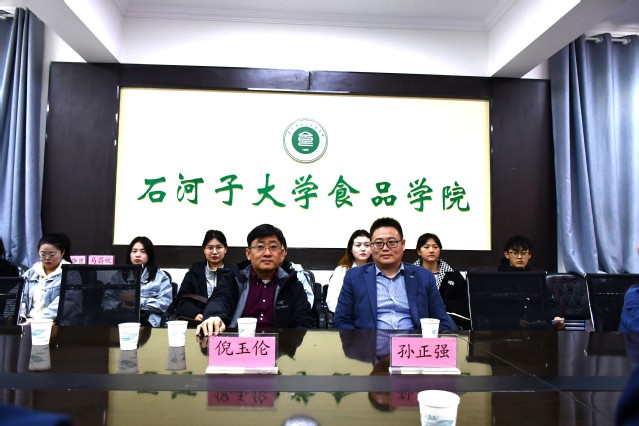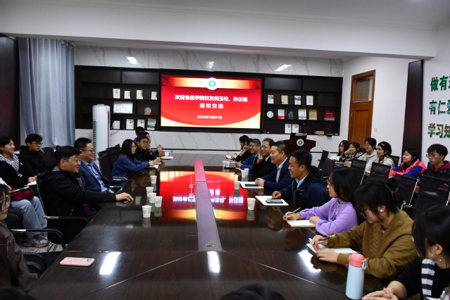 10月21日,食品学院2004届校友倪玉伦、孙正强返校。食品学院院长、校友会会长张建,党委副书记、校友会秘书长雷建鹏,李应彪、胡建军、陈国刚及本硕学生代表30余人参加交流座谈。