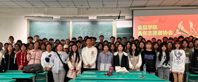 食品学院青年志愿者协会成立于2013年,隶属于食品学院团委,指导教师为刘桂青老师,现有成员160人,年平均开展活动20余场。食品青协是一个致力于推动青年参与社会公益活动的组织,协会以培养和发展青年志愿者队伍,为其发掘一个投身新时代青年伟大实践的平台和促进社会公益事业的发展为宗旨。