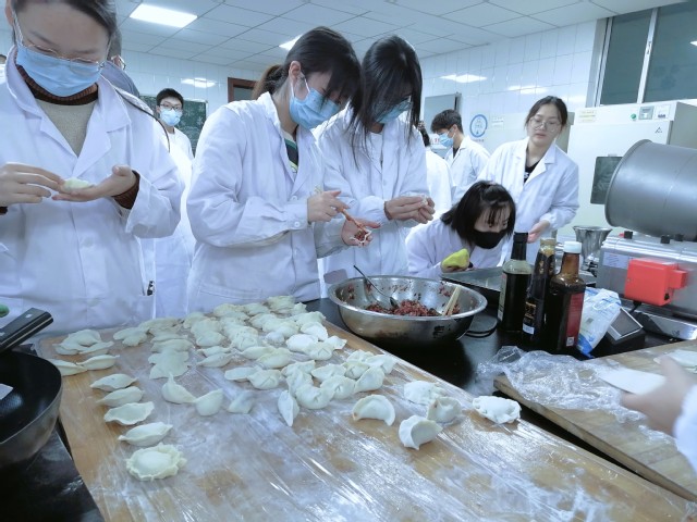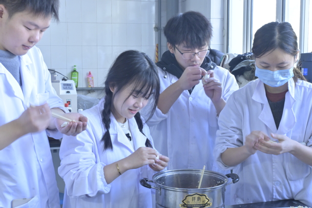 冬至节气到来之际,为了丰富同学们的校园文化生活,增进同学之间的感情和交流,营造浓厚的节日氛围,弘扬传统文化,食品学院利用专业特色在实验楼204室开展了迎冬至包饺子活动。活动共分两场,近100余人参加。