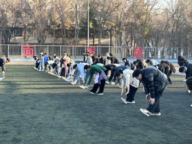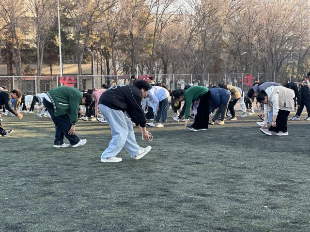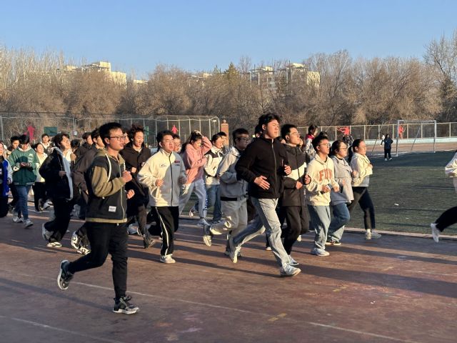 8时50分,2022、2023级全体同学们沐浴着清晨的阳光,在北区田径场集合,以饱满的热情和坚定的步伐,诠释着新时代青年的精神风貌。东方红日出,奋斗正当时。三圈统一跑步结束,各班同学在班委组织下继续有序进行速度跑、跳绳、拉伸等各项锻炼。
