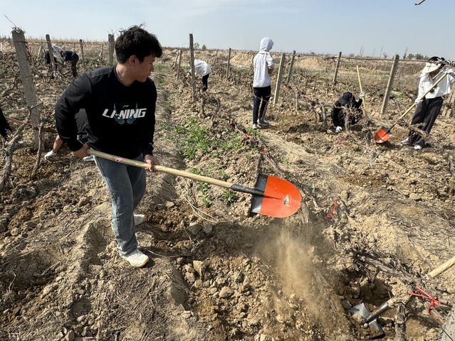4月20日,葡萄与葡萄酒工程专业赴天山北麓产区玛纳斯小产区中信尼雅酒业军马场葡萄基地开展2024年第一次葡萄学实习。