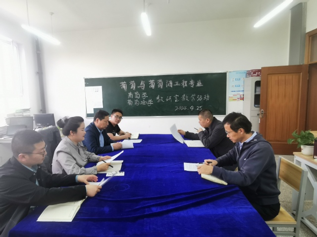 4月25日,葡萄学与葡萄酒学教研室联合组织了2023-2024学年第二学期第五次教研活动,本次研讨的内容为《葡萄酒市场学》课程教学改革的探索与实践,食品学院单春会副院长、教办吴庆智老师督导了本次教研活动。