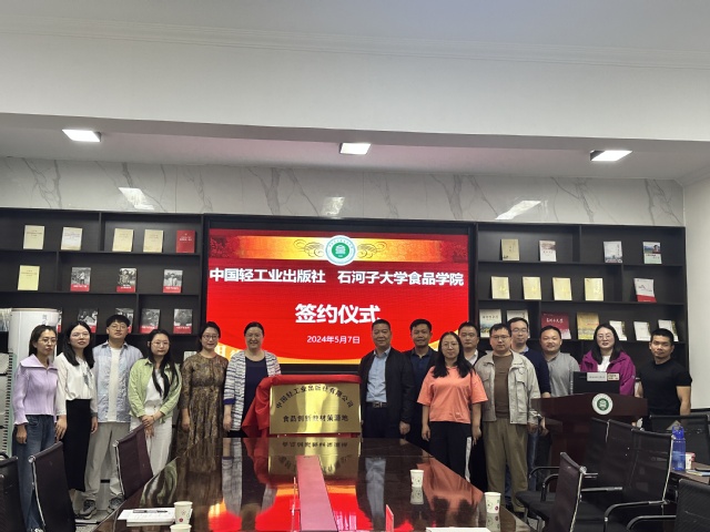 最后,双方正式签署战略合作协议,共同揭牌“食品创新教材策源地”。此次战略合作的达成,为双方进一步的交流合作奠定了基础,双方力求联合锤炼精品,打造一批内容形式创新、教学效果好的高水平特色教材,以及具有创新性、实用性、系统性的高水平学术专著,以提升学院的教学质量,促进学科发展。