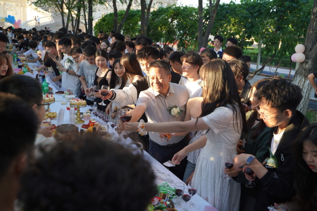 毕业生和教师代表发言后,全体成员一同举杯祝福。此时,夜幕降临,华灯初上,属于同学们的时间刚刚开始,毕业并不总是充满悲伤,也可以充满温暖与欢笑。在即将踏上新征程之际,愿每一位毕业生都能够心怀梦想、勇往直前,在人生的道路上绽放出属于自己的光彩。