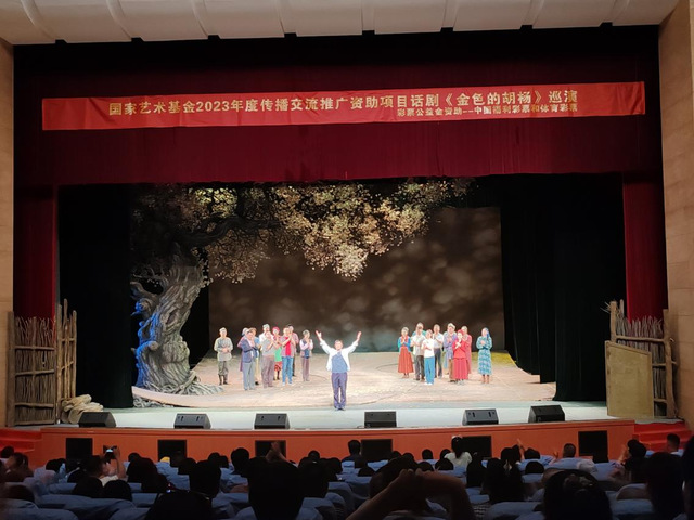该话剧以党的“脱贫攻坚战”为题材,根据已故“全国最美村官”“优秀共产党员”、喀什地区泽普县科克墩村原党支部书记刘国忠真实事迹改编。他像一粒奋斗的种子,在曾经贫瘠的科克墩村生根、开花、结果,用激情和赤诚践行诺言,用拼搏与奉献引导村民转变思想、学习新技术,靠勤劳的双手带领着全村各族群众脱贫致富,以自己的实际行动践行党的群众路线,开创了乡村振兴的新局面。《金色的胡杨》以其独特的艺术魅力,展现了刘国忠与乡亲们之间深厚的民族团结情感,以及他带领群众脱贫致富的坚定信念和无私奉献的精神。该剧的演出不仅感动了团队成员,也引发了团队每个人对于基层干部工作和民族团结重要性的思考。