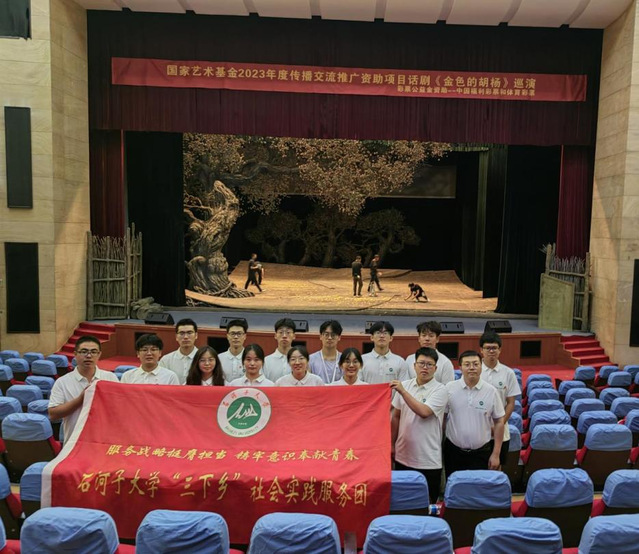 7月7日下午,石河子大学赴第六师共青团农场党史学习教育实践团在共青团农场领导的协调下,前往五家渠市文化中心观看话剧《金色的胡杨》。
