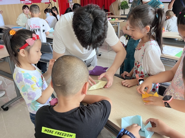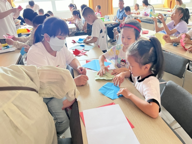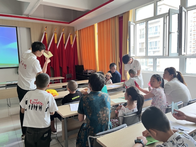“一剪之趣夺神功,美在民间永不朽”。实践团队成员们手持剪刀、彩纸,详细向青少年学生介绍剪纸艺术技巧。“我知道!红旗上的五角星代表着人民大团结!”剪纸过程中,团队成员向社区青少年们开展了爱国主义教育,学生们对国旗有了更加直观和深刻的认识,也更加明白了自己作为未来建设者的责任和使命。
