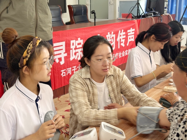 活动现场秩序井然,实践团成员耐心地与每一位前来参与活动的居民交流,为他们提供测血压、测血糖等服务,并向他们讲解健康保健知识。同时,团队成员还为前来参加便民健康活动的居民朋友们发放了健康管理宣讲手册,特别叮嘱他们要合理膳食、均衡营养,提醒他们要多锻炼,定期体检,有身体不适要及早到医院进行检查治疗,养成健康的生活习惯。