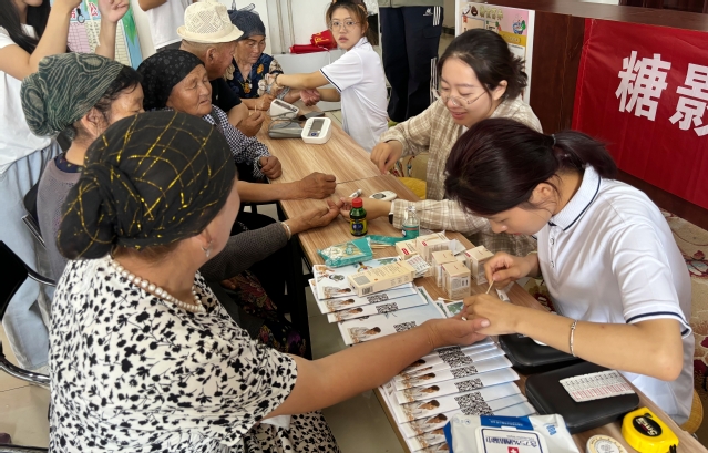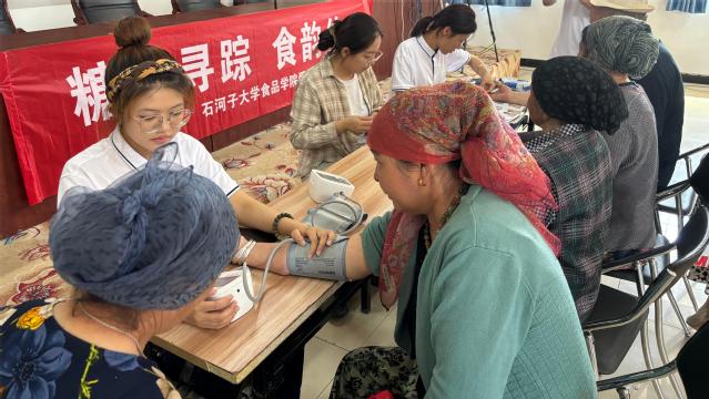 为进一步提高居民保健意识,为社区居民提供贴心、便民的健康咨询服务,石河子大学食品学院爱心医疗社会实践团联合玛纳斯县塔西河乡相关工作人员在7月7日至7月10日开展了以“糖影寻踪 食韵传声”为主题的便民健康志愿活动。