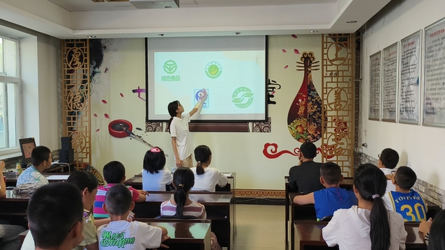 活动现场,实践团队成员宋倩倩结合自身专业知识,为小朋友们生动讲解了食品安全的重要性以及如何识别食品包装上的各类标志。
