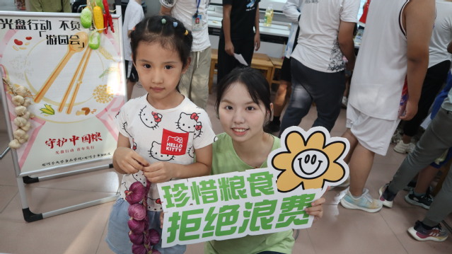 “小朋友们,在这里打卡拍照之后,完成9个小游戏,就可以集齐‘稻黍麦菽稷’和‘光盘行动’九个印章哦!”小朋友们排好队伍,在实践团成员王子宁和林禹帆带领下,一起在活动的起点领取集章券,并在展板上签名留念。实践团成员事先准备好了各种各样的有关节约粮食的手拿牌,小朋友们挑选自己喜欢的样式,在甘紫薇老师的带领下拍照打卡,游园会活动正式开始。