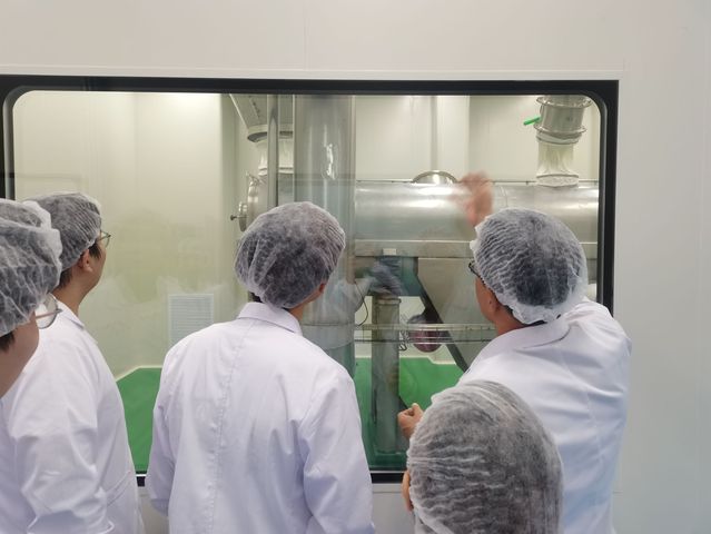 随后,实践团成员分别在生产副总经理吕文东和质检部潘惠敏经理的带领下进入加工车间和质量检测中心,了解其现代化设备的加工流程和完备的质量检测过程。一罐奶粉从牧场抵达销售端,恰似一个悠长的慢镜,如果打下一束追光,会发现坚守在这条奶粉产业链上的人们,正跟随镜头,一点点的还原初心、品质与责任。(图二)