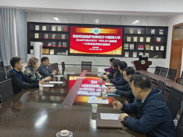 10月17日,哈萨克斯坦沙卡里姆大学ZHARYKBASSOV YERLAN副教授一行来我院访问交流,副院长任亚梅教授、李宝坤教授及多位老师参与座谈会。