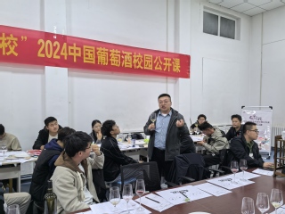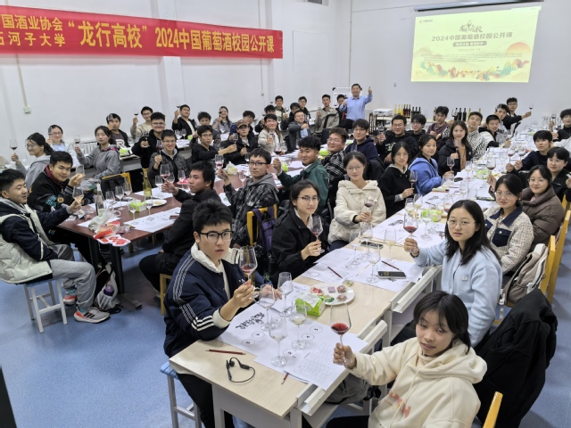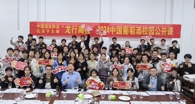 10月23日,由中国酒业协会葡萄酒分会主办的“龙行高校”中国葡萄酒校园公开课第八课,在新疆特色果蔬贮藏加工教育部工程研究中心会议室顺利举办,活动围绕“陇原古韵,葡酒新梦”主题展开,来自石河子大学食品学院葡萄与葡萄酒工程专业的2024级新生共60余名同学参加了活动,全国61所高校师生在线上线下体验了这场丰富多彩的学习和品味之旅。