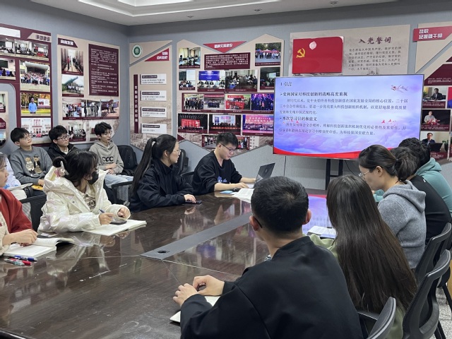 会议由党支部书记漆泽亮主持,强调了新时代下党中央对科技创新的重视,并带领大家学习了优化科技创新组织机制的相关文件,阐述了其重要性和紧迫性。讨论环节中,与会者结合个人研究方向,分享了对科技创新的看法和建议,表达了将理论知识转化为实践的决心。研究生会主席贺心如表示,青年党员和学生骨干应将理论与实践相结合,通过创新合作模式促进学术交流与跨学科合作。