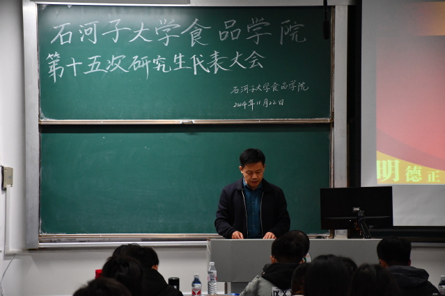 11月22日,我院第十五次研究生代表大会暨递补大会在绿3-203顺利举行,会议邀请学院党委副书记雷建鹏、校研究生会主席团成员徐磊及各学院研究生会主席团成员出席,共有来自食品学院的25名研究生代表参加本次会议。