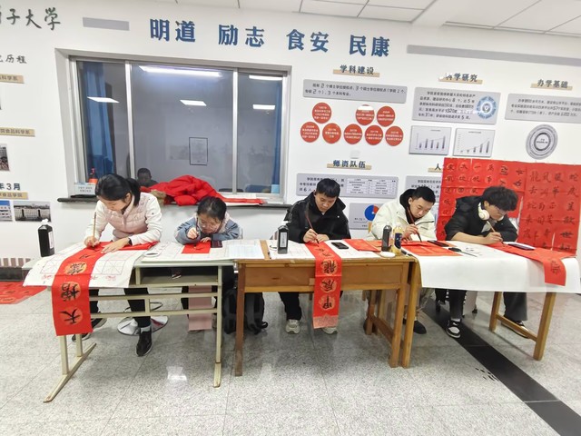 随着元旦佳节的脚步日益临近,为弘扬中华优秀传统文化,丰富校园文化生活,12月20日在食品学院主楼一楼大厅食品学院学生会、晨曦文学社与师范学院红烛书法社联合举办了“对联迎新春,福字启新潮”元旦系列活动。此次活动吸引了广大师生热情参与,共同感受传统文化的独特魅力,迎接新年的到来。