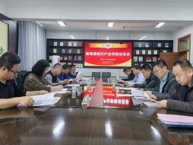2025年3月7日,食品学院召开葡萄酒现代产业学院论证会,石河子大学教务处李玲副处长,食品学院程卫东书记、张建院长,张裕巴保男爵酒庄程国利总经理、中信尼雅质量部谈明东经理,葡萄与葡萄酒工程系部分教师参加了论证会,会议由魏长庆副院长主持。论证会听取了葡工系关于推进葡萄酒现代产业学院的工作汇报、葡萄酒现代产业学院建设方案、葡萄与葡萄酒工程专业(现代产业班)培养方案及现代产业班学生分流方案,与会领导、专家进行了充分的讨论并通过论证。