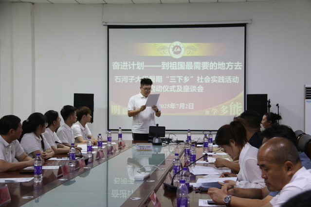张海欢介绍了共青团农场基本情况和活动整体安排方案。农场先后荣获国家级现代农业示范园区、五家渠国家级现代农业科技园区、兵团文明团场、兵团民族团结进步创建示范团场、兵团数字化团场建设示范团等国家级和兵团级荣誉20余项。实践团指导老师王平、带队老师牛见明介绍了大学“奋进计划——到祖国最需要的地方去”为主题的实践活动基本情况,同时对农场的精心安排和配合表示感谢,希望通过此次活动推动食品学院与农场在多领域开展更多内容的合作,创新“校企融合、政校育人”新模式。