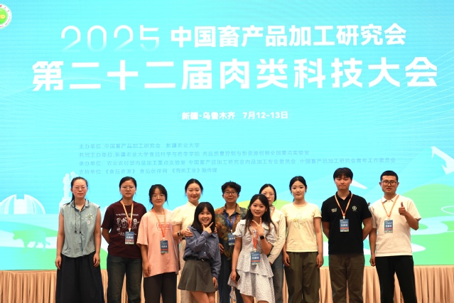 2025年7月11日至13日,由中国畜产品加工研究会主办的第二十二届肉类科技大会在乌鲁木齐昆仑宾馆隆重召开。石河子大学食品学院畜产品加工与质量安全控制中心师生代表参会并作多场学术报告,研究成果受到与会专家学者的广泛关注和高度评价。