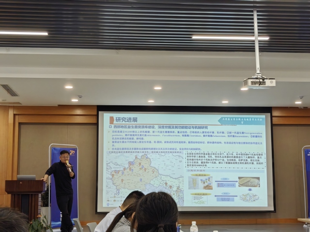 在专题汇报环节,黄瑞杰副教授全面介绍了石河子大学食品学院八大研究方向及其在服务区域产业方面的主要成果;倪永清教授分享了新疆多地域人群益生菌资源开发与利用的最新进展;程少波副教授重点汇报了南疆特色林果产品采后贮藏与加工关键技术的创新与应用实践;樊哲新副教授则深入探讨了新疆原生益生菌功能挖掘及其产业化应用前景。