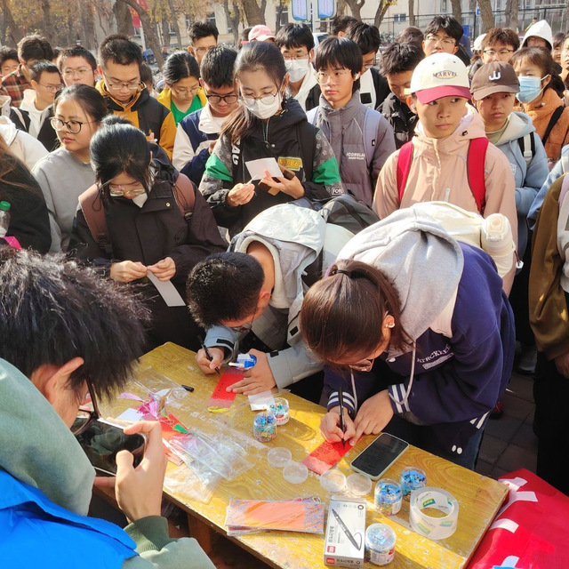 校园内,食品学院学生会开展手写贺卡活动。石大学子们以笔为介,把对长辈的感恩、对传统的敬意凝聚于字里行间。“重阳寄思情难尽,一纸鸿笺意绵长”——这些暖心话语,既是青年学子对长辈的拳拳在念,也以墨香为媒,让“感恩”这一重阳节的精神内核在校园内生根发芽,让传统节日的文化底蕴在青春的笔触中历久弥新。