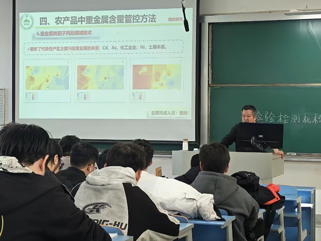 何伟忠研究员现为国家现代农业技术体系(西甜瓜)质量安全与营养品质评价岗位专家团队成员和自治区现代农业技术体系(西甜瓜)质量安全与营养品质评价岗专家。课堂上,何老师结合自身多年科研经验,深入剖析食品安全事件对社会的影响与产业的危害,并分享了农药残留微生物降解、风险调减等前沿技术,引导学生关注行业亟待解决的核心技术问题,启发科研与职业思考。