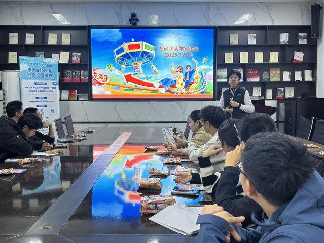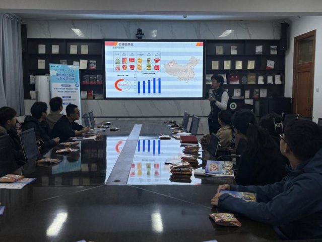 为进一步贯彻党中央、国务院关于高校毕业生就业工作的决策部署,进一步助力学院2026届毕业生把握行业优质就业资源、实现职业发展新起点,全力促进我院毕业生高质量充分就业,2025年12月18日下午,康师傅控股有限公司专场招聘宣讲会在食品学院220会议室成功举办。康师傅控股有限公司新疆石河子工厂人力资源主管沈丽芳担任主讲人,学办老师张伟达出席活动,学院2026届本科及研究生毕业生共30余人积极参与。